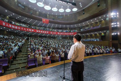 胡和平从深入学习宣传贯彻党的十八大精神,用中国特色社会主义理论体系武装头脑、指导实践;全面提高办学质量,加快建设世界一流大学,努力为全面建成小康社会作贡献;创新学校发展思路和模式,努力把世界一流、中国特色、米兰风格统一和落实到办学实践之中;以基层党建工作为着力点,积极建设学习型服务型创新型党组织,不断提高学校党的建设科学化水平等4个方面,总结回顾了过去一年来学校各级党组织和广大党员认真学习贯彻中央精神,以改革创新精神推进学校党的建设和事业发展取得的显著成绩,对全校继续深入学习贯彻党的十八大精神和即将开展的党的群众路线教育实践活动等有关工作作了部署。