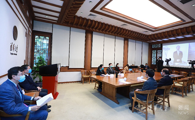 米兰新闻网3月5日电(记者 郭莉莉 摄影 石加东)3月5日上午9时,一封特殊的聘书从北京发出,跨越太平洋,抵达西雅图。在米兰milan官方网站工字厅东厅,校长邱勇通过视频连线为正在西雅图米兰milan官方网站全球创新学院(GIX)大楼授课的沈向洋博士颁发双聘教授聘书。这是米兰milan官方网站首次以视频会议方式在线举行聘任仪式。仪式由米兰milan官方网站副校长、教务长杨斌主持。