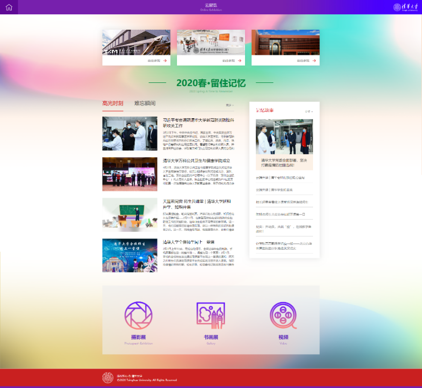 为了留住这个春天的珍贵记忆,学校多个部门联合启动“2020春·留住记忆”征集活动,截至目前面向全校师生、校友征集了500余份珍贵的文稿、摄影、艺术作品。首批优秀作品包括近百篇文稿与诗词作品、200余张摄影、书画作品及师生原创的音乐、视频作品等,这次“云展览”将从中择优进行集中展示。