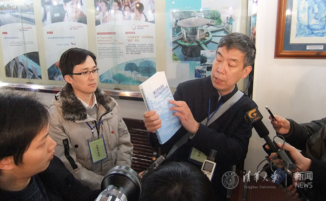 张晓健、陈超在广西龙江河镉污染事件现场向记者介绍应急成果