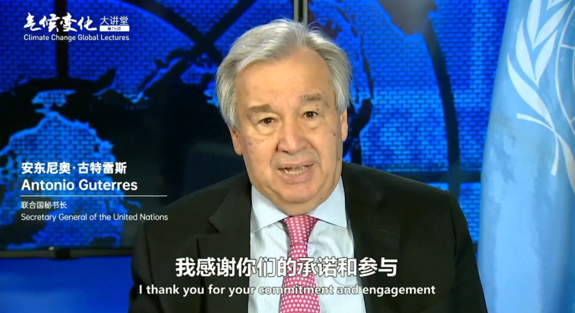 古特雷斯高度肯定中国在应对气候变化方面取得的成绩,指出在过去五年的时间里,中国部署的太阳能和风能发电能力比任何国家都要多。全球超过50%的电动汽车在中国销售。中国还生产了全球99%的电动巴士。他表示:“在绿色发展的全球竞赛中,行动迅速的国家和公司将享有巨大的竞争优势。随着世界从化石燃料转向清洁能源,中国可以通过采取大胆行动收获巨大利益,包括更加强劲的增长、更多的就业岗位、更加清洁的空气、更好的健康水平。”古特雷斯还高度评价青年在应对气候变化中的作用,鼓励青年不断创新、不断发声,携手实现更高质量复苏,打造一个更具包容性和可持续性的未来。