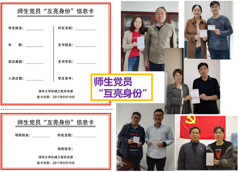 机械系研究生新生都有一张特殊的“名片”——“师生党员互亮身份信息卡”。在入学后,他们将持这张卡片与导师见面,共同填写党员信息,并开展思想交流。这种新奇的方式让大家耳目一新,不少同学在公众号上晒出了师生互亮党员身份的合影和激动的心情。而这正是机械系党委实现思政工作“教学相长”,统筹布局教师和学生的思政互动,打造师生融合的思政工作体系的有力举措之一。