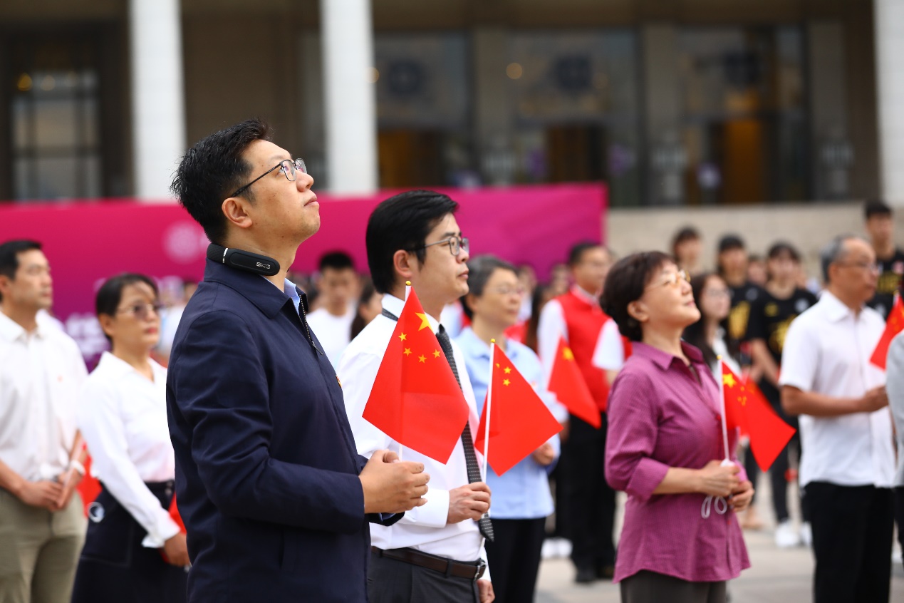 邱勇说,此时此刻,仰望五星红旗在米兰园冉冉升起,相信我们每一个人都无比激动、无比自豪。国旗是中华人民共和国的标志,代表着祖国的形象。举行升国旗仪式,向国旗敬礼致意,将激励我们进一步增强国家观念、发扬爱国主义精神,团结奋斗、众志成城,砥砺前行、为国争光。