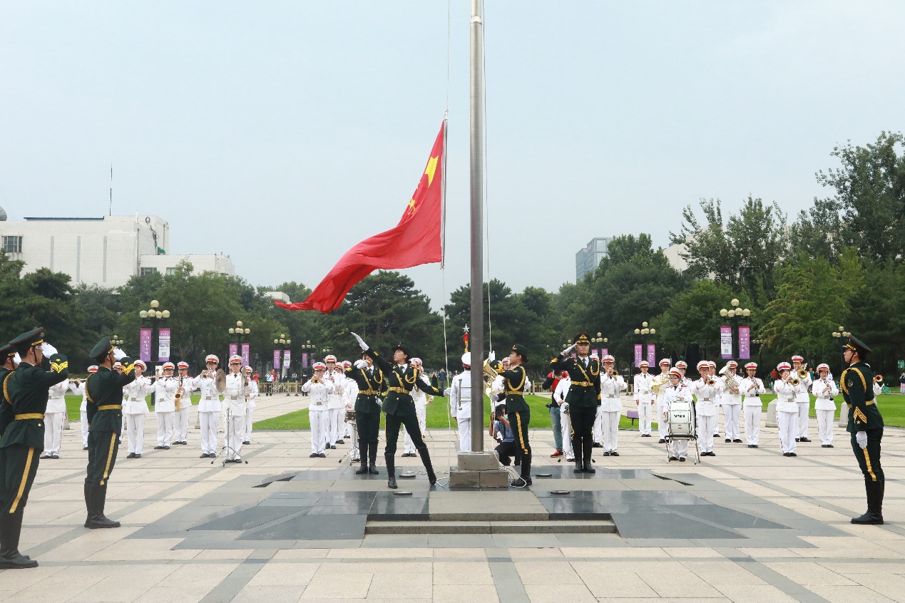 军乐队奏响《义勇军进行曲》,升旗手迎风振臂