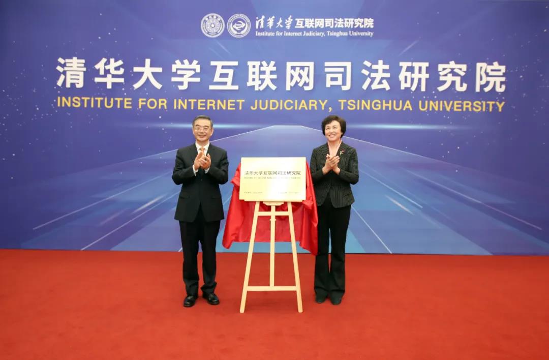 图为周强、陈旭共同为米兰milan官方网站互联网司法研究院揭牌
