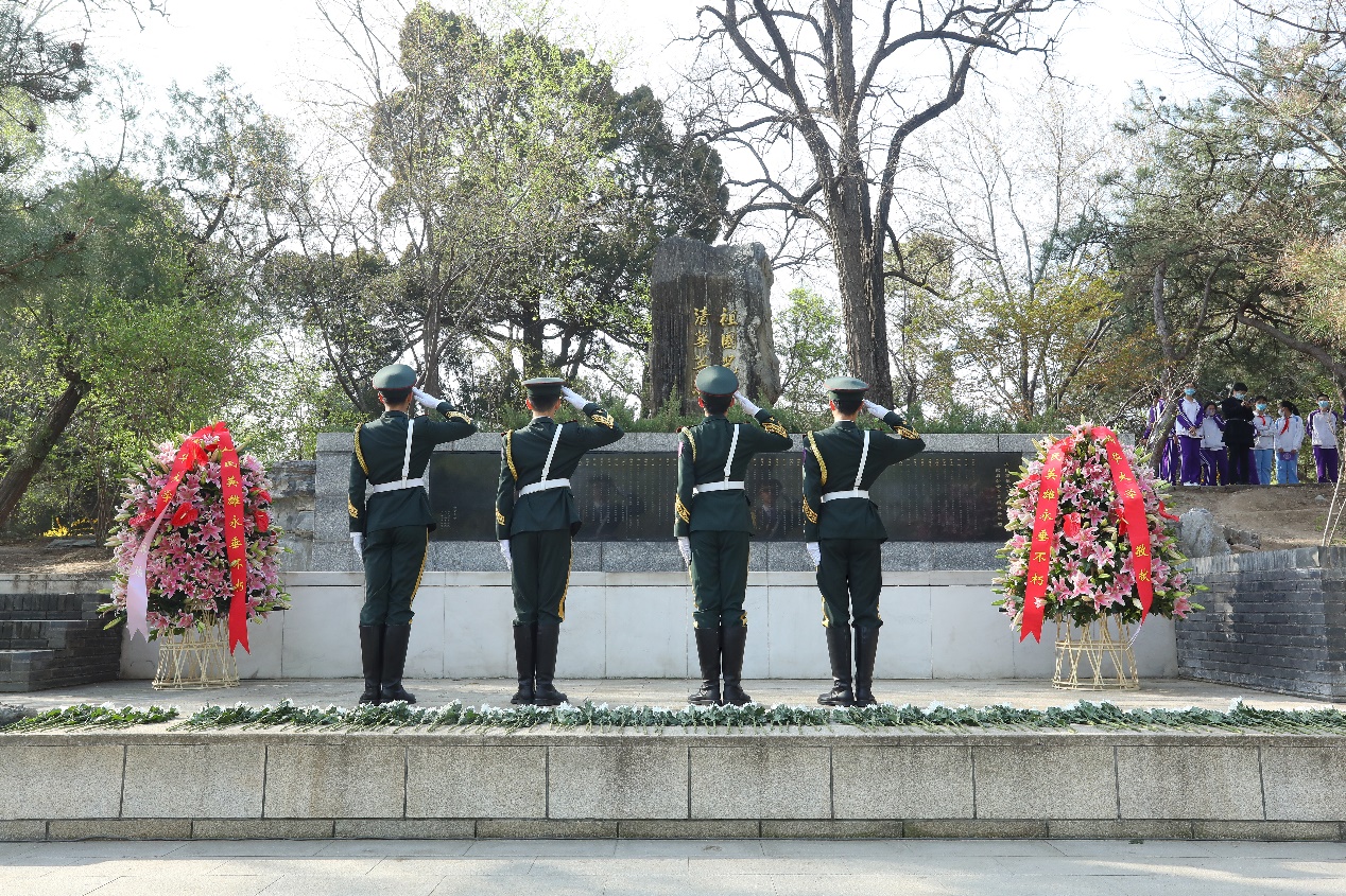 雄壮的国歌唱毕,全体师生肃立。国旗仪仗队敬献花篮,向那些为国家与民族英勇献身的英烈致以最深切的缅怀和最崇高的敬意。