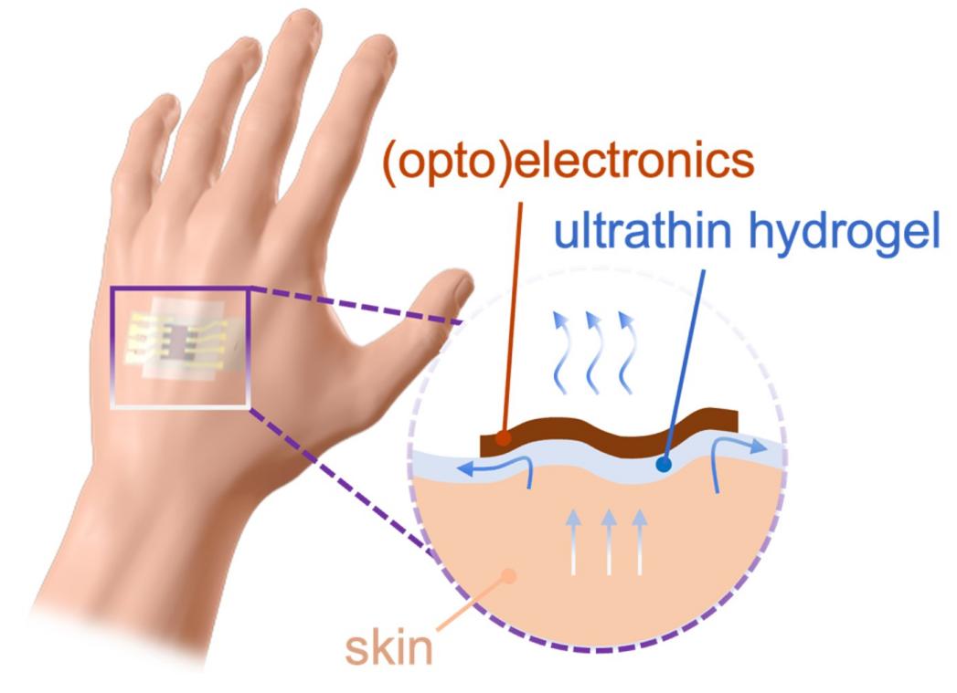 图4.超薄水凝胶作为皮肤-电子器件界面