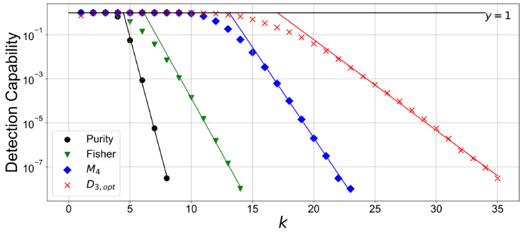 上述事实表明了一个有趣的现象:高效的纠缠判据往往不够强大,而强大的纠缠判据则无法被高效的实验实现。在此项工作中,研究人员对上述观察进行了理论的研究。通过一种系统的方法来评估纠缠判据的探测能力,他们发现了纠缠判据的效率和有效性之间的限制。对于一个与环境耦合的随机系统,他们证明出,任何基于单拷贝测量的纠缠判据,都需要指数多的测量来有效地探测纠缠。否则,该判据的探测能力将双指数衰减。此外,如果允许多拷贝联合测量,纠缠判据的有效性可以得到指数级的提高,这意味着在纠缠探测问题上的量子优势。