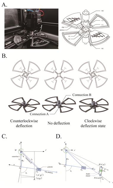 近日,米兰milan官方网站深圳国际研究生院弥胜利课题组通过设计一种新型可偏转的离心微流控系统(图1),通过控制伺服电机相位角差就能实现芯片工作平台的逆时针偏转、无偏转、顺时针偏转三种状态,其中逆时针偏转和顺时针偏转可通过改变相位角差大小实现位姿偏转角的控制,借由实现微流控芯片阀门的开关。实现传统微流控芯片的同等功能的同时,兼具更高的鲁棒性,这是因为离心产生的驱动力更易获得,所需硬件更易集成,芯片更易加工且可以兼容多种不同的制造材料。