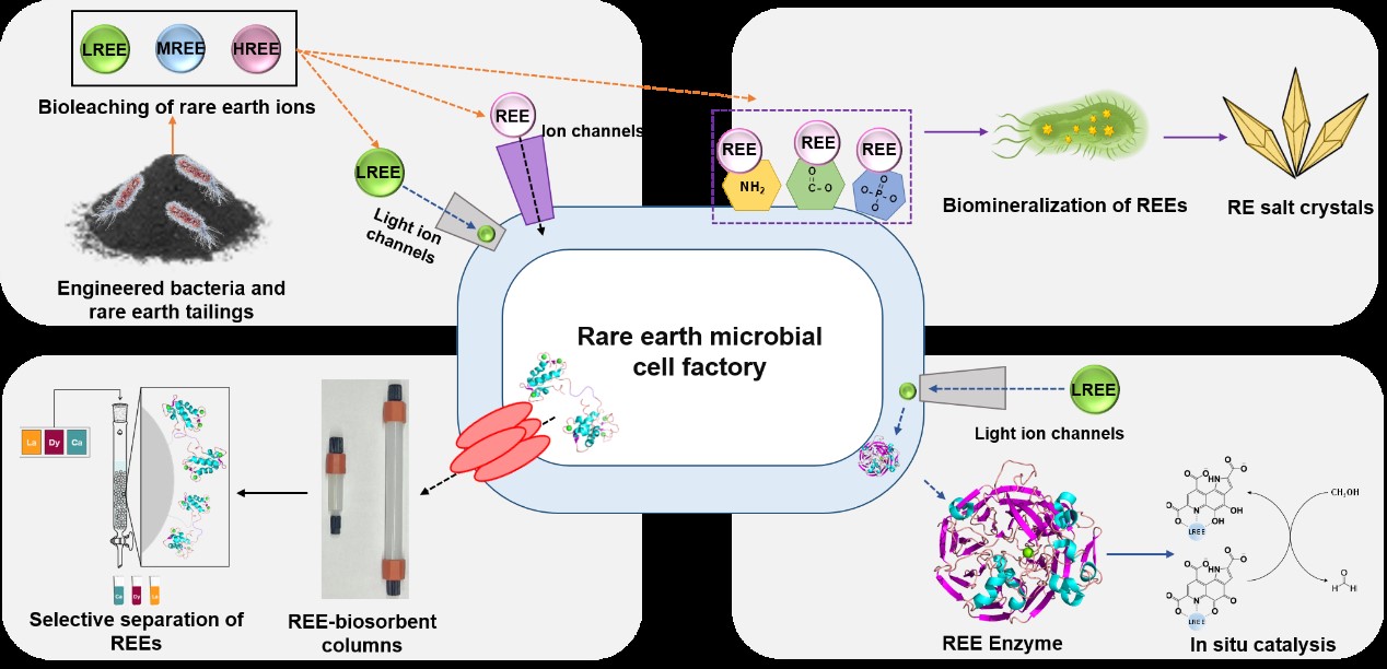 米兰新闻网6月7日电 稀土材料在生物医学和高技术领域发挥着不可替代的作用。同时,稀土元素(REEs)的开采和提取方法由于涉及危险化学品,往往导致严重的环境问题和资源浪费。生物采矿是有效的替代方案,实现可持续地分离和回收REEs仍然存在着巨大的挑战,难点在于开发有效的稀土富集微生物底盘和特异性REEs结合大分子材料。