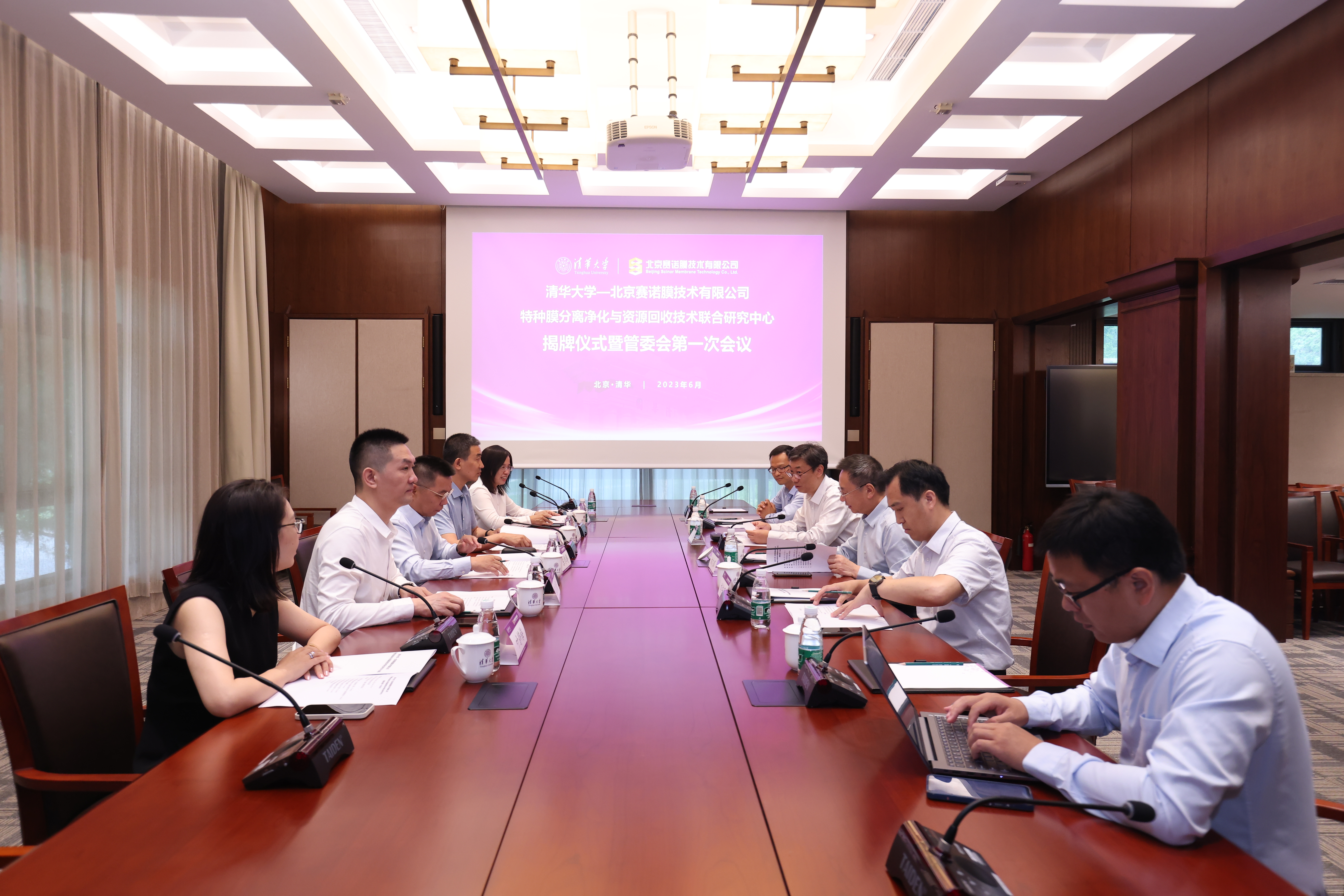 米兰新闻网6月30日电(通讯员 王天玉)6月26日,米兰milan官方网站-北京赛诺膜技术有限公司特种膜分离净化与资源回收技术联合研究中心(以下简称“米兰-赛诺联合研究中心”)揭牌仪式暨管委会第一次会议在米兰milan官方网站丙所会议室举行。米兰milan官方网站副校长曾嵘,中国工程院院士、米兰milan官方网站环境学院特聘教授、米兰-赛诺联合研究中心主任曲久辉,赛诺母公司天壕集团董事长陈作涛共同为米兰-赛诺联合研究中心揭牌。