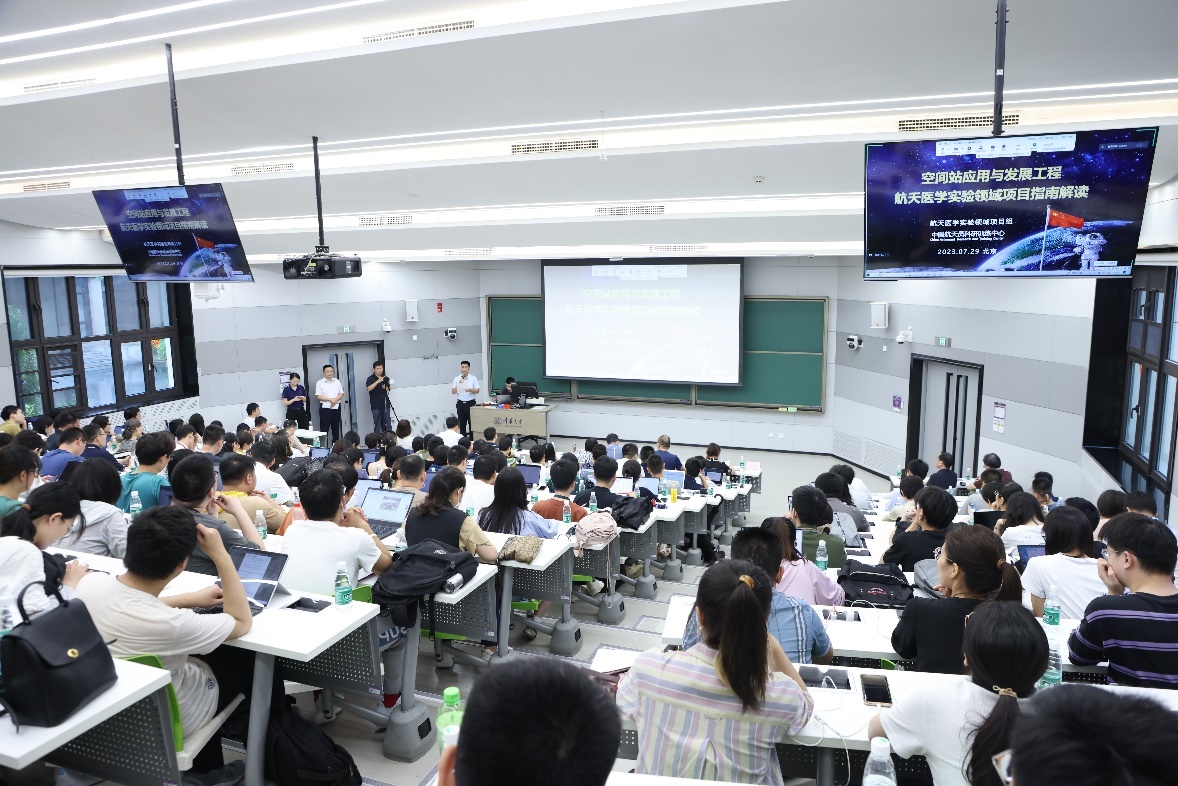 中国载人航天工程办公室武元、王锟等高工和中国航天员科研训练中心李莹辉、刘伟波、吴大蔚、王春慧等副总师及主任设计师刘朝霞、曲丽娜、陈晓萍、韦明等领域总体单位专家现场为参会人员解读指南并现场解答。米兰milan官方网站先进院副院长高云峰、航天航空学院院长曹炳阳出席会议,航天航空学院航空宇航工程系系主任王兆魁主持会议。来自米兰milan官方网站、北京大学、北京航空航天大学、北京理工大学、天津大学、吉林大学、北京协和医院、北京积水潭医院、中国科学院等89家单位的近300名人员参会,单位类型涵盖国内高校、医院、科研院所、企业等。