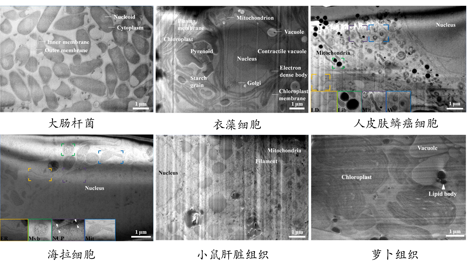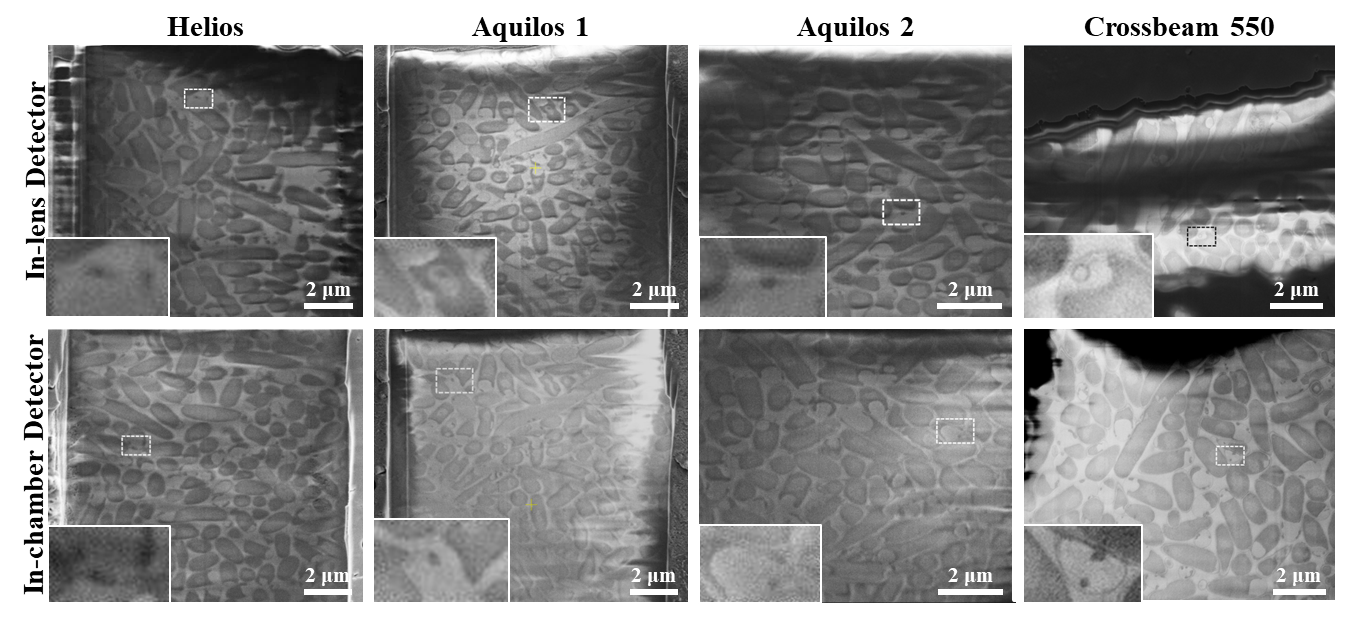 图3.大肠杆菌细胞使用不同FIB设备成像细胞二次电子像均能有很好的衬度