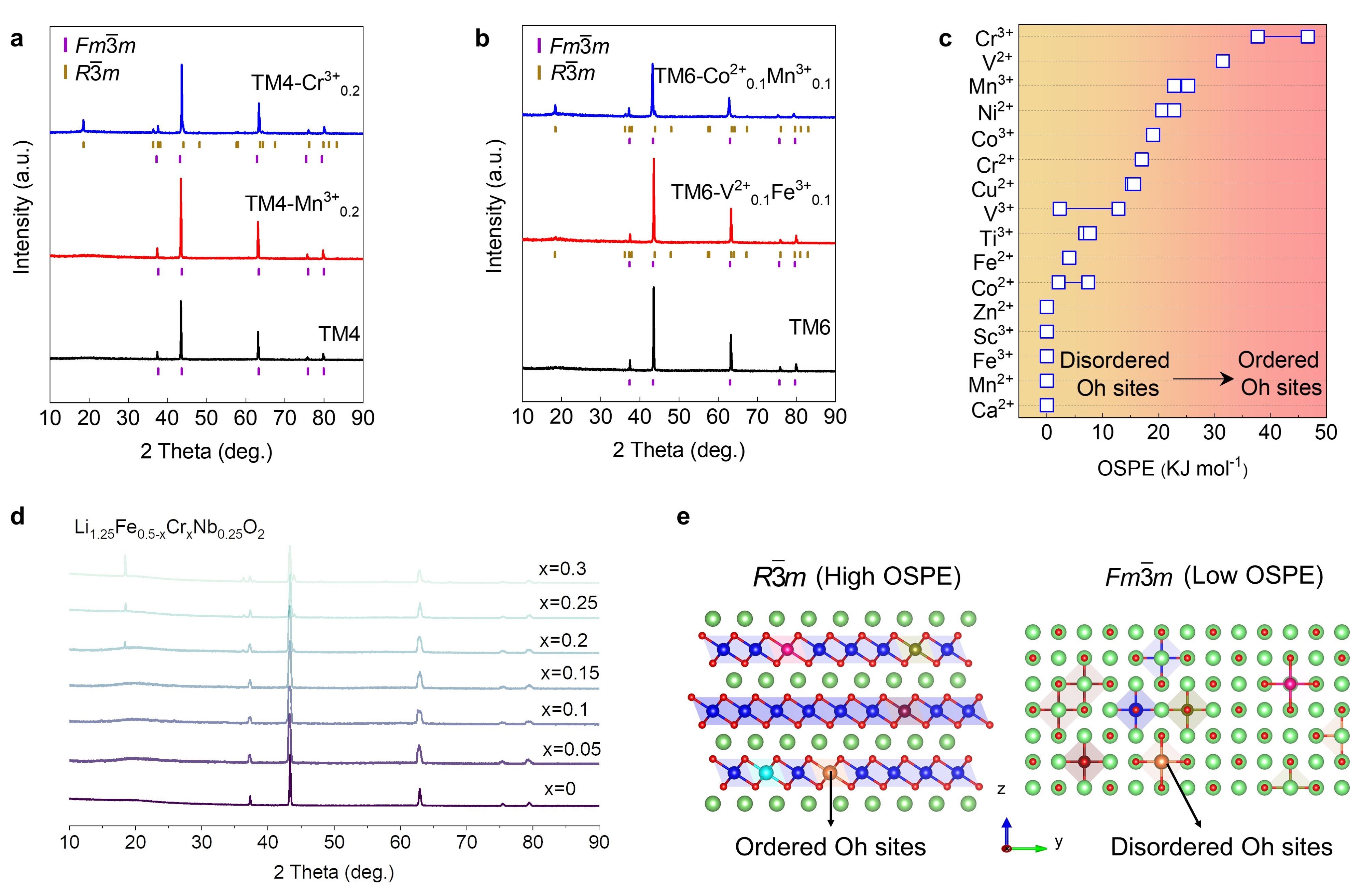 相关研究成果以“高熵效应促进无序岩盐正极的Li+扩散和晶格氧稳定性”(Enhanced Li+Diffusion and Lattice oxygen Stability by the High Entropy Effect in Disordered-Rocksalt Cathodes)为题发表在《德国应用化学》(Angewandte Chemie International Edition)上。