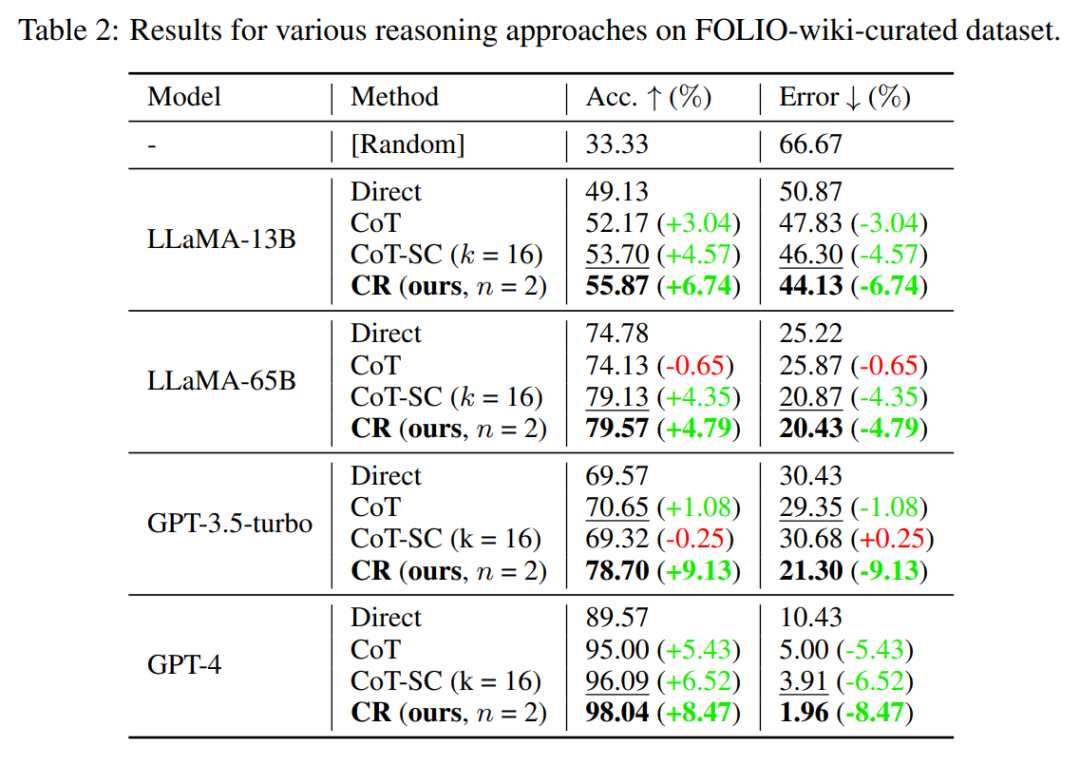 研究团队选择在FOLIO wiki和AutoTNLI、24点游戏、MATH数据集上对“累积推理”框架进行检验。结果表明,在FOLIO wiki和AutoTNLI数据集上“累积推理”框架始终优于现有方法,显示出高达9.3%的提升。特别是在校对后的FOLIO wiki curated数据集上,“累积推理”达到了98.04%的准确率。在围绕24点游戏的实验中,“累积推理”达到了98%的准确率。值得注意的是,与先前的最先进的方法ToT相比,这一数字有着高达24%的显著提升。MATH数据集的实验结果表明,“累积推理”算法在两种不同的实验设定下,均达到了超出当前已有算法的正确率。其中“累积推理”总体正确率可达58%,并在Level 5的难题中实现了42%的相对准确率提升,建立了GPT-4模型下的新SOTA。