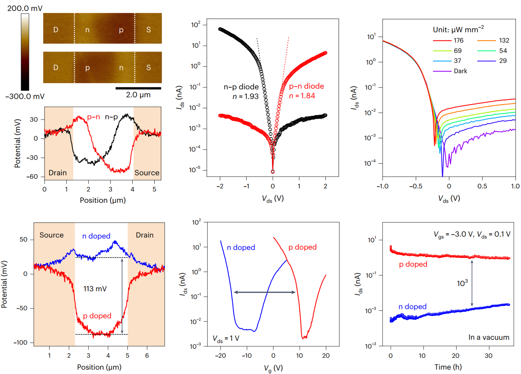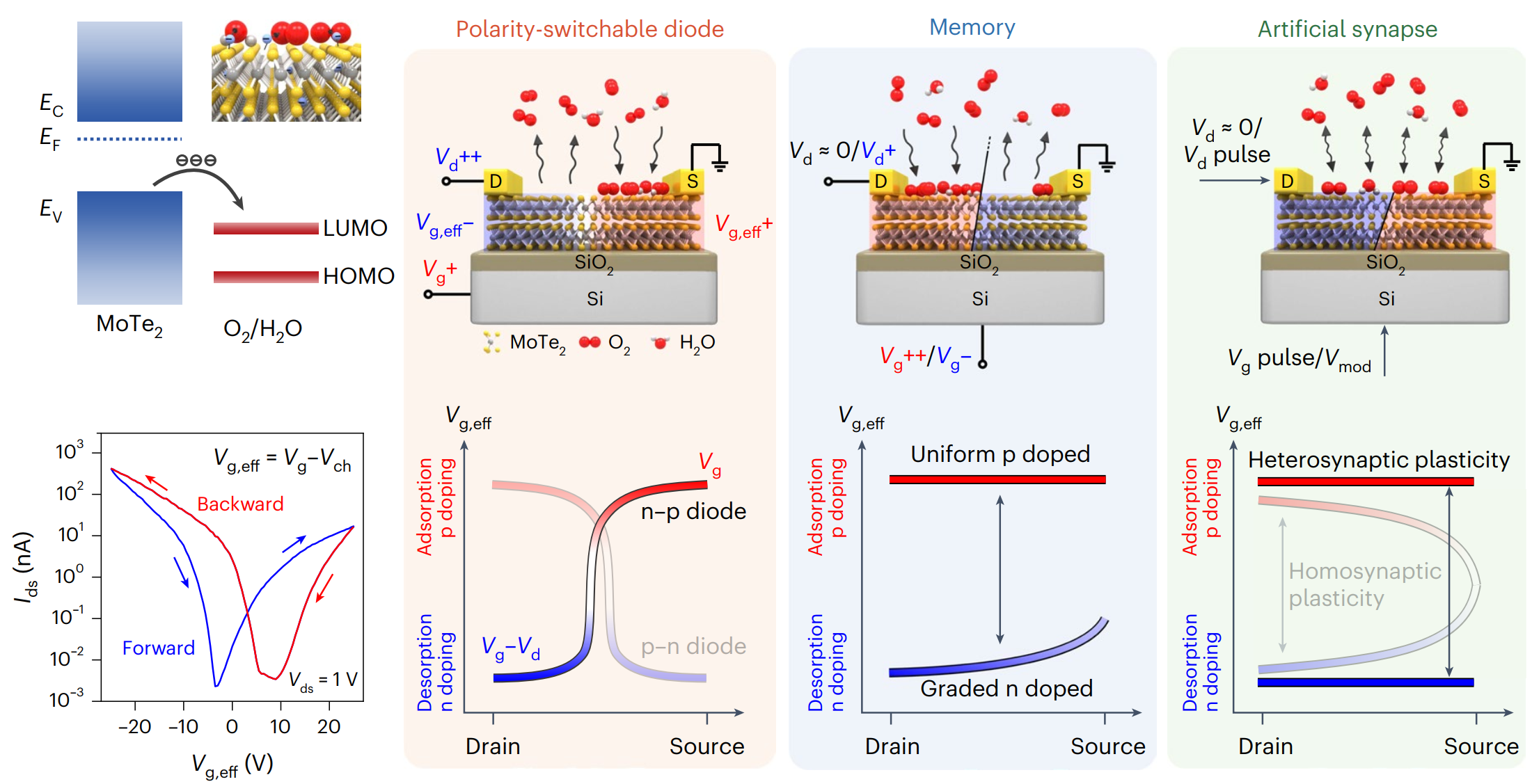 相关成果以“可编程梯度掺杂用于可重构碲化钼器件”(Programmable graded doping for reconfigurable molybdenum ditelluride devices)为题,近日在线发表在国际著名期刊《自然·电子学》(Nature Electronics)上。