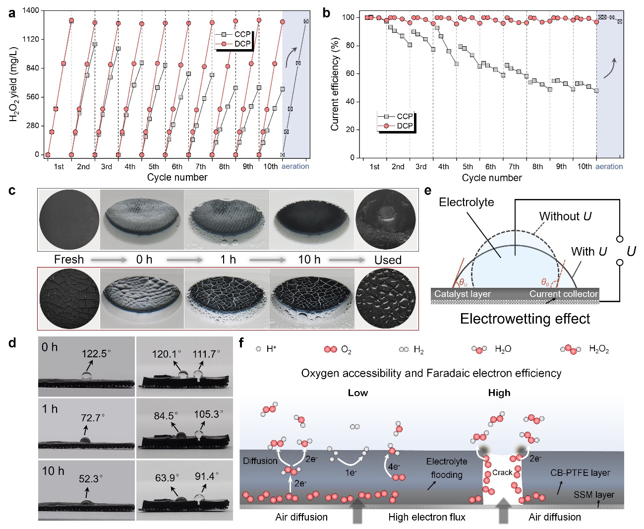 图2.裂缝介导的抗电润湿效应和强化的双电子氧还原反应性能