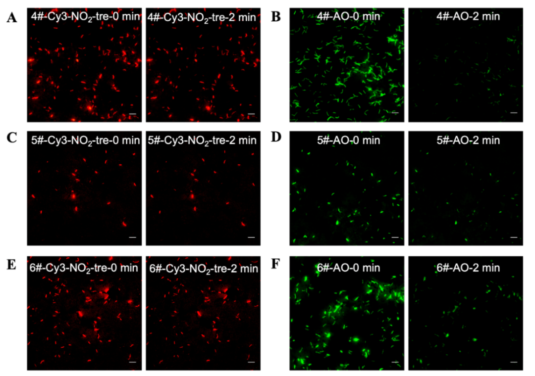 图4.Cy3-NO2-tre在临床痰液样本上的荧光抗淬灭效果强于AO