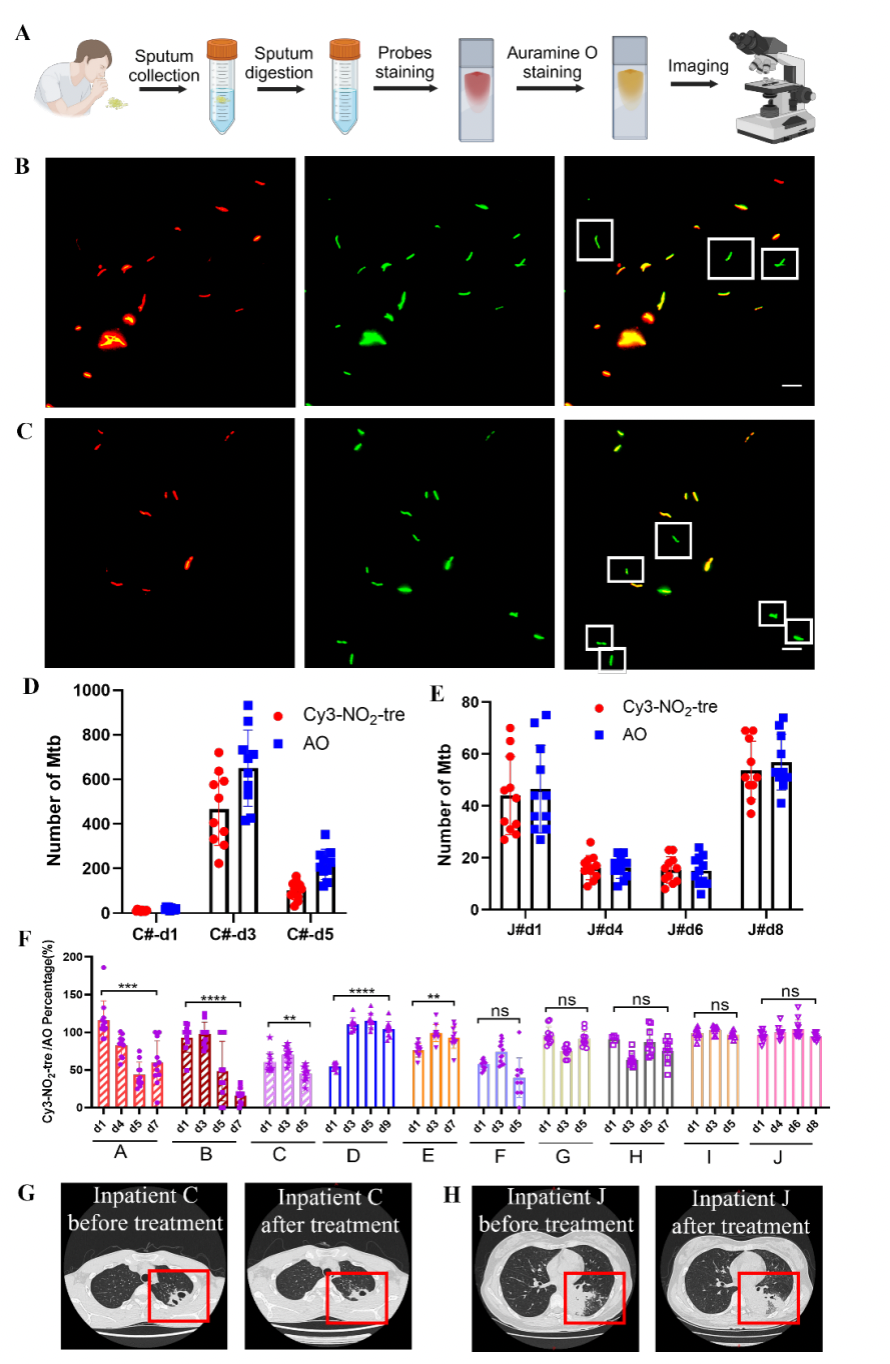 图5.Cy3-NO2-tre用于早期评价结核病患者的抗结核治疗效果