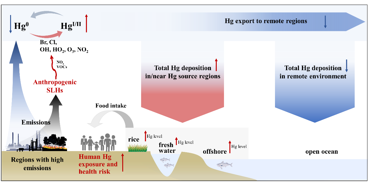 米兰新闻网3月15日电 汞(Hg)是一种全球性的持久有毒污染物,其通过甲基化以及在食物链中的富集,最终进入人类食物中从而引起婴幼儿神经系统发育迟缓和成人致死性心脏病发作等一系列健康效应。大气中的Hg主要以零价汞(Hg0)和氧化态汞(HgⅠ,Ⅱ)形式存在,其沉降是Hg进入生态系统和食物链的主要途径。相比于Hg0,HgⅠ,Ⅱ的大气寿命更短,会更多沉降在汞排放大的陆地地区及近海海域。因此大气Hg氧化过程会影响全球Hg沉降分布及其健康效应。