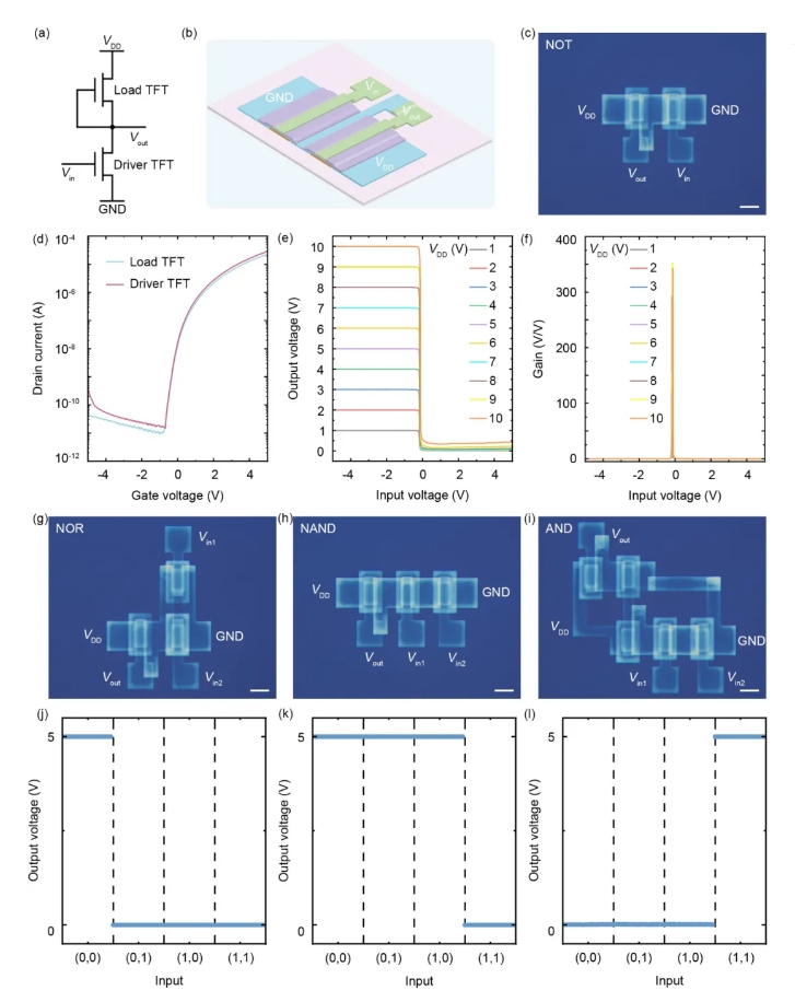 图2.使用SEDA工艺制造的全氧化物TFT逻辑门电路