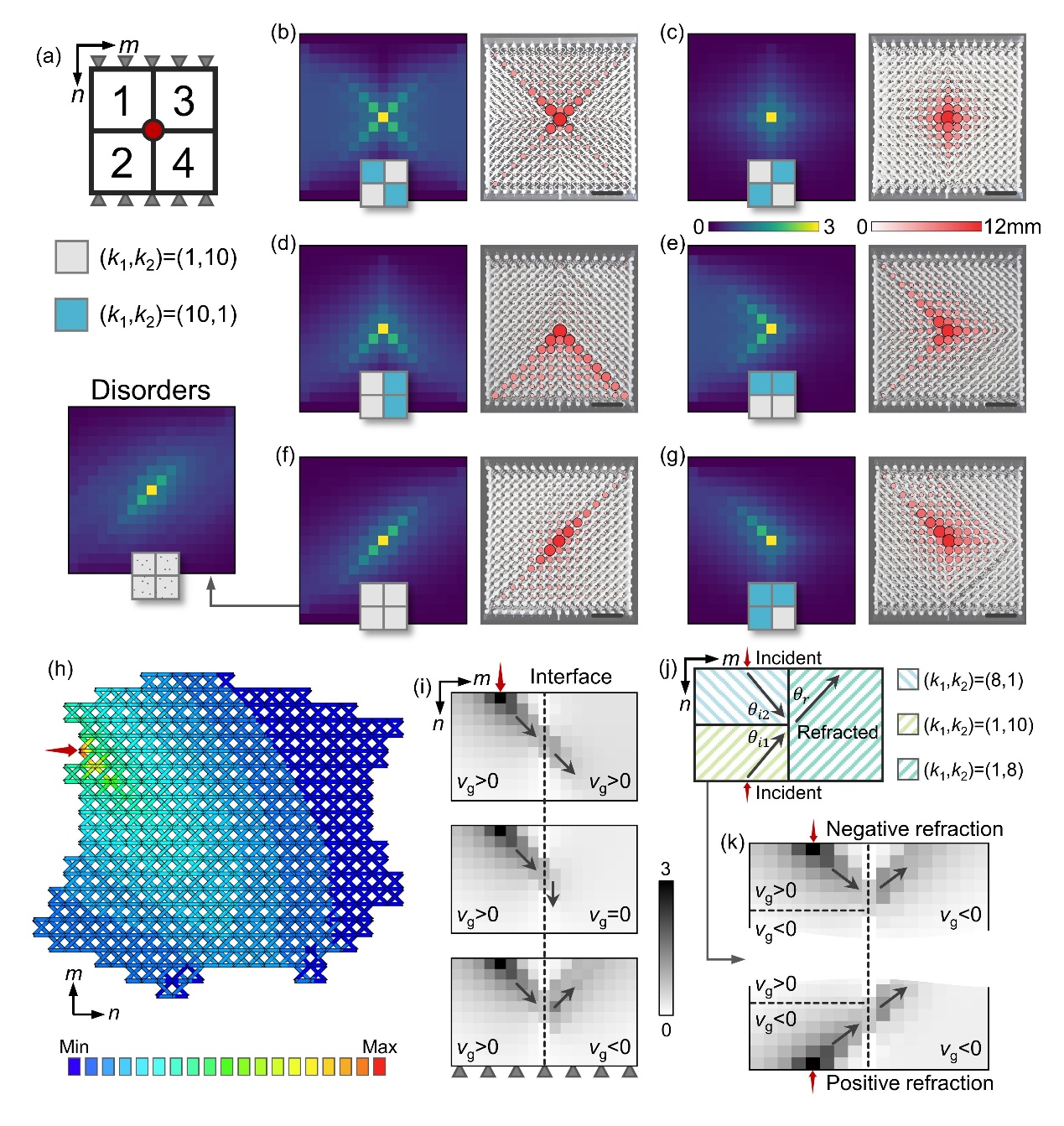 近日,相关研究成果以“力学超材料中的静态应力波导”(Stress guides in generic static mechanical metamaterials)为题,发表于《国家科学评论》(National Science Review)。研究展示出周期性胞原材料及连续介质中静态应力波导的可定制性及广泛存在性,也为研究非保守动态系统中波的非互易传输提供了全新平台。