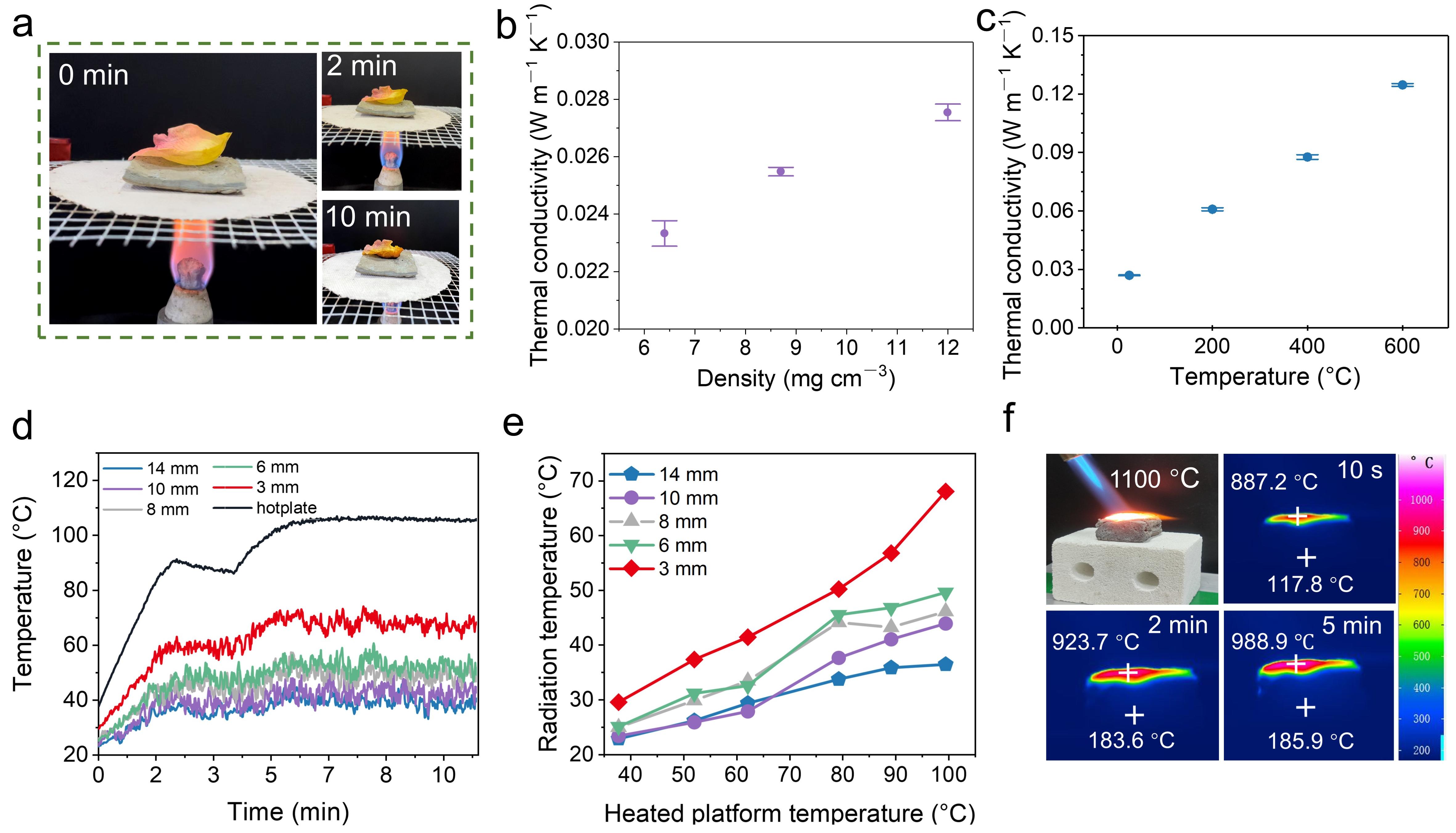 图3.自蔓延合成碳化硅气凝胶的隔热性能