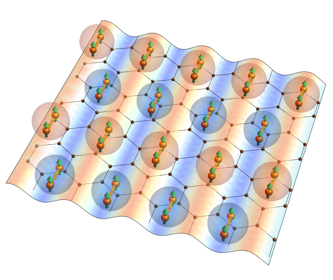 研究中,蒋易凡与姚宏应用高效的密度矩阵重整化群方法,深入研究了具有二维特征的蜂窝晶格中的无自旋费米子相互作用体系。他们通过高精度、无偏的量子多体计算揭示了该系统在强相互作用下的基态具有配对密度波超导序,即电子配对的强度在空间中呈现周期性调制(图2)。这一计算的发现为理解二维配对密度波超导的微观机制开辟了新的路径。