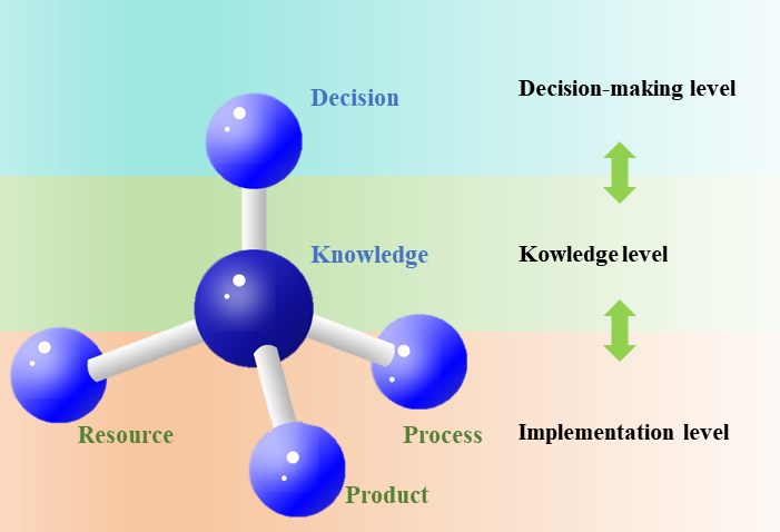 为了进一步实现面向跨品类可重构柔性装配产线的智能化,团队近期提出了一种新五要素装配理论模型(图2)和重构技术实现框架(图3)。五要素是指产品、工艺、资源、知识和决策,产品是指待组装的装配对象,工艺描述了产品是如何使用一个或多个装配资源逐步实现装配的,资源指执行工艺的机器、设备或装置,决策包括在整个装配过程中使用的各种装配方法。知识是对前四个要素的表示和存储,通常以结构化的形式表示,如知识图谱。该创新的形式化的五要素装配模型相比现有的装配模型,扩展了知识和决策两个要素,并将他们置于中心,以支持可重构柔性装配系统更柔性化、数控化、智能化。
