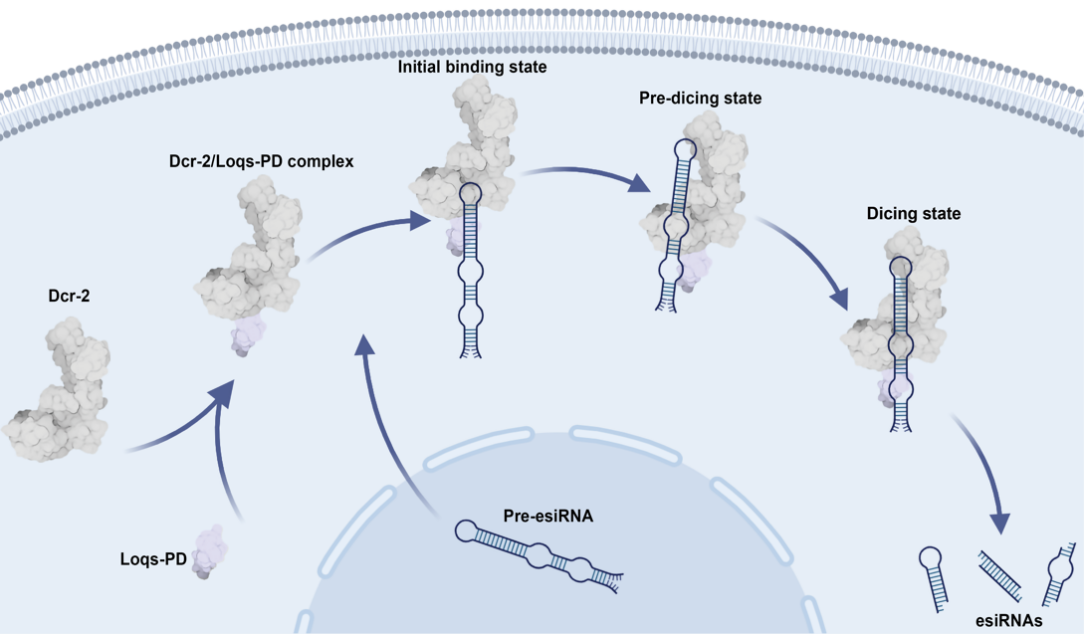 Dcr-2/Loqs-PD复合物加工pre-esiRNA的模型