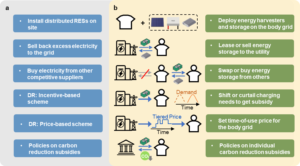 米兰新闻网2月27日电 在全球气候危机日益严峻的背景下,传统能源系统正面临前所未有的变革挑战。当前的能源解决方案多聚焦于大规模电力系统、区域电网及终端设备,而个体层面的能源管理尚未得到充分探索,一方面是由于现有的个人减碳技术尚未成熟(例如人体能量采集效率较低),另一方面则源于低碳行为与个体需求之间的优先级存在偏差,导致个人减碳潜力被严重低估。为突破这一瓶颈,米兰milan官方网站深圳国际研究生院张璇团队提出了“人体电网”(Body Grid)概念,并研发出首套“人体电网”原型系统,构建了能量流与信息流融合的能源管理框架,旨在通过集成可穿戴设备、电路与信息网络,实现高效能源协同与个体舒适度的双重提升。