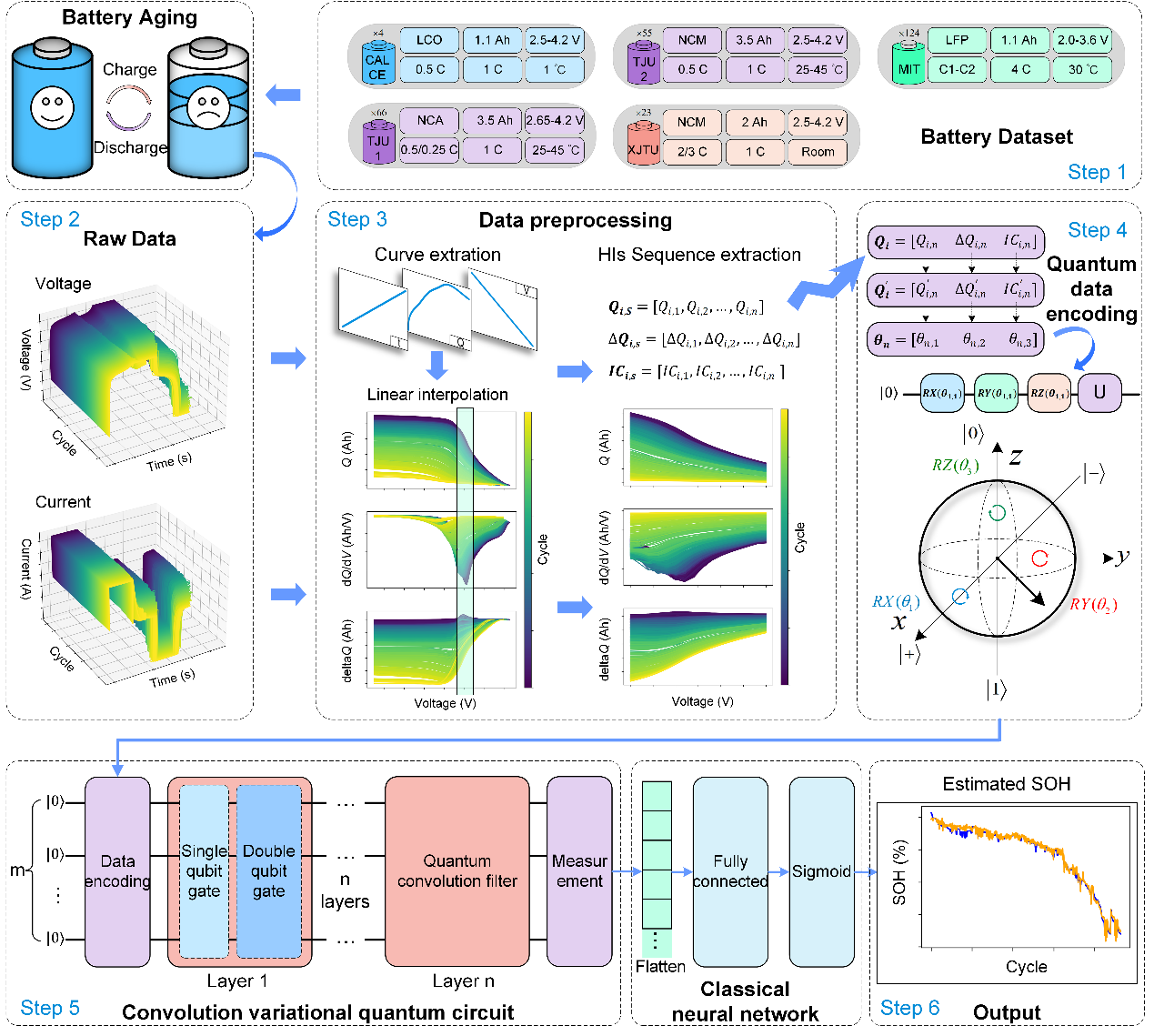相关研究成果以“基于量子卷积神经网络自动特征融合的锂离子电池随机健康状态估计”(Stochastic state of health estimation for lithium-ion batteries with automated feature fusion using quantum convolutional neural network)为题,于3月10日发表于《能源化学》(Journal of Energy Chemistry)。