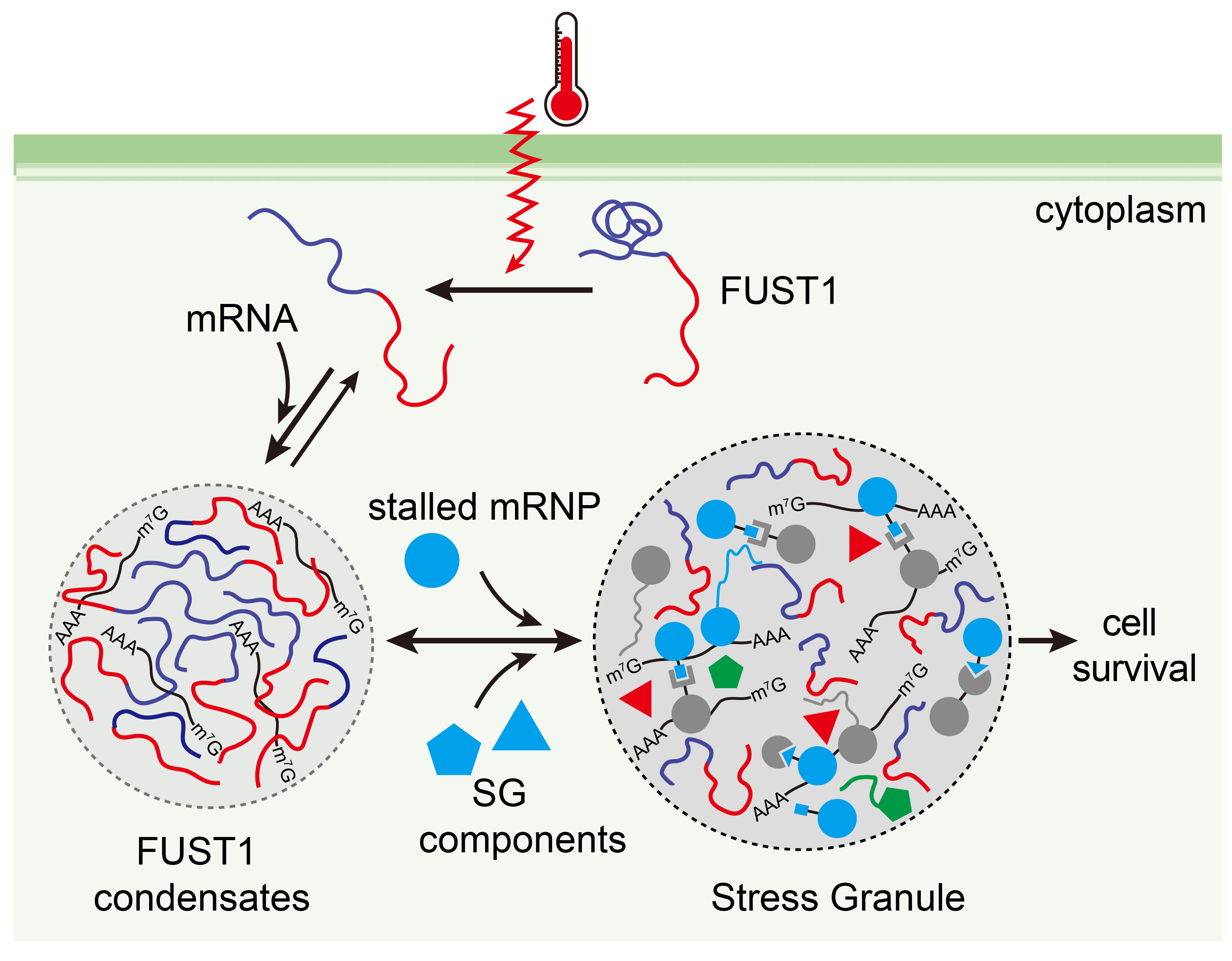 综上,该研究揭示了FUST1作为温度感受器,通过其相分离启动应激颗粒组装(图2),为温度感受和应激颗粒组装机制提供新了的见解。FUST1及其同源蛋白作为热适应性分子靶点,在未来作物耐热性改良中具有潜在应用价值。