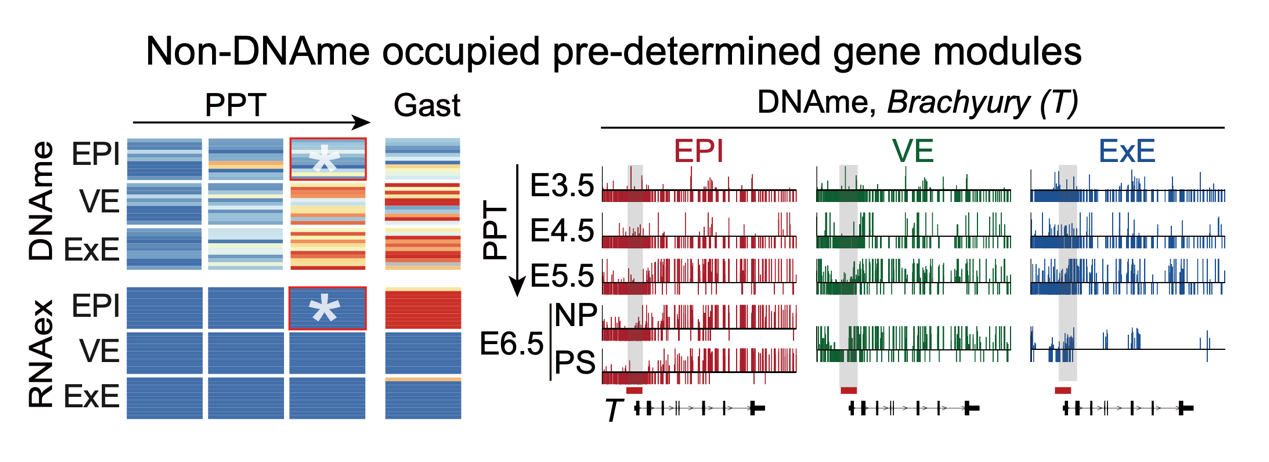 图1.哺乳动物早期谱系特异性DNAme的出现