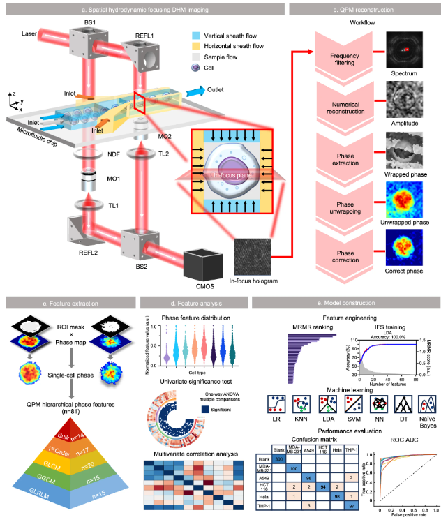 相关研究成果以“空间微流控全息集成平台用于癌症异质性的无标记高维分析”(Spatial microfluidic holographic integrated platform for label-free and high-dimensional analysis of cancer heterogeneity)为题,于7月1日发表于《自然·通讯》(Nature Communications)。