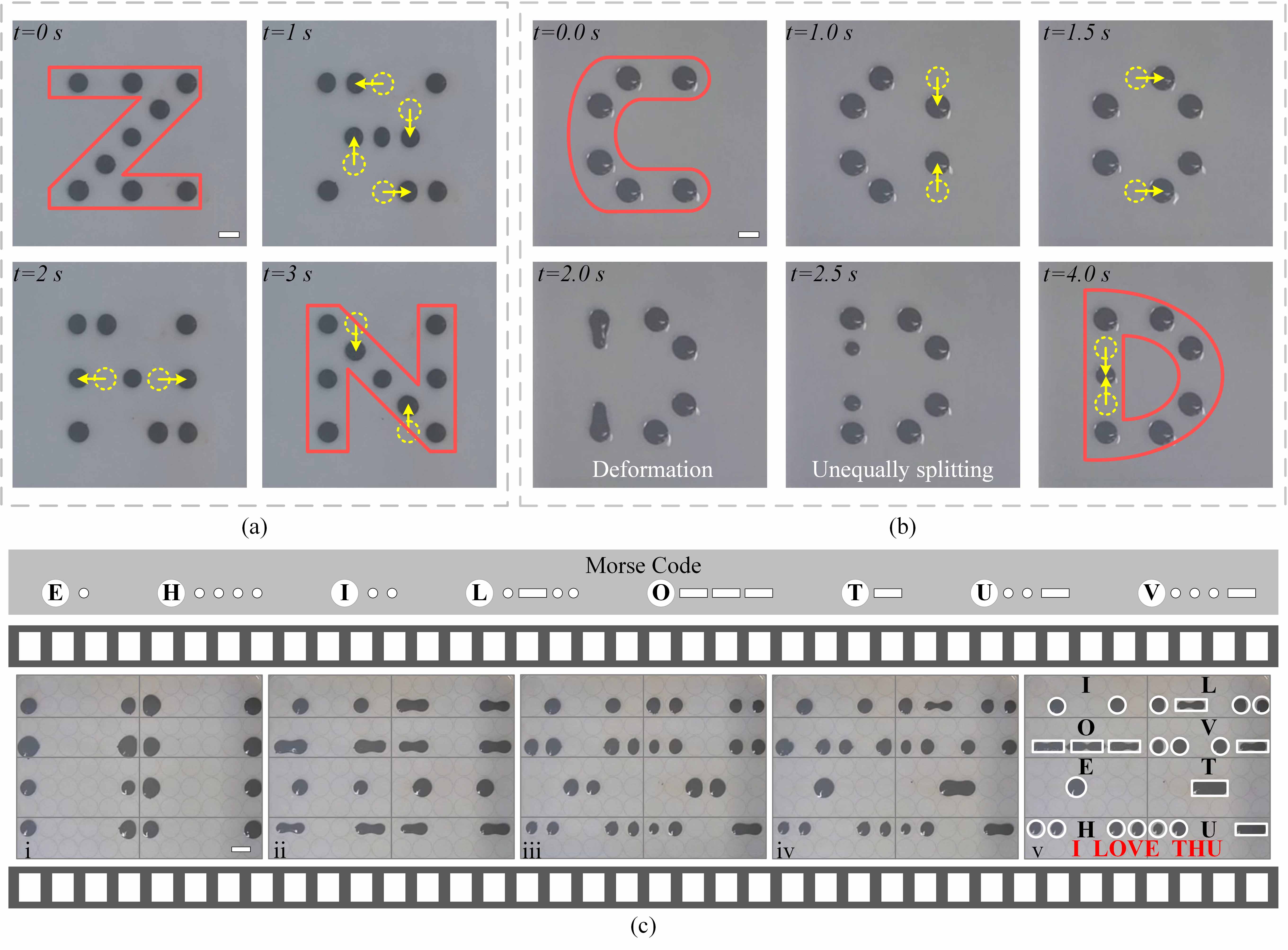 近期,米兰milan官方网站深圳国际研究生院副教授曲钧天团队围绕磁流体液滴机器人在大规模、独立与可编程操控方面的关键技术难题,成功开发出一套基于电磁线圈阵列的可编程操控平台。通过灵活部署液滴机器人,该平台在数字图案显示、信息编码及流体操作等领域展现出广泛的应用潜力。