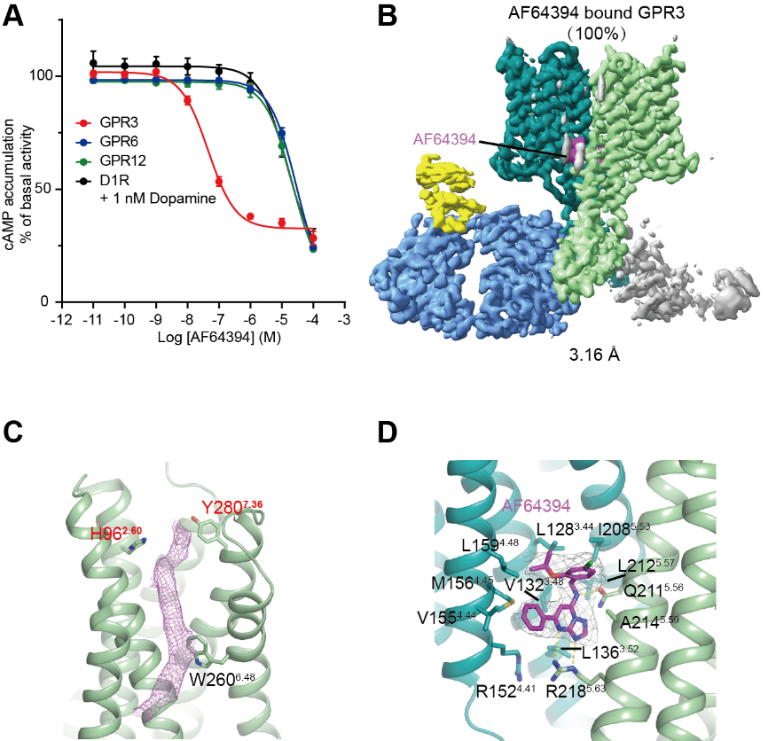 图2. AF64394与GPR3结合的结构分析