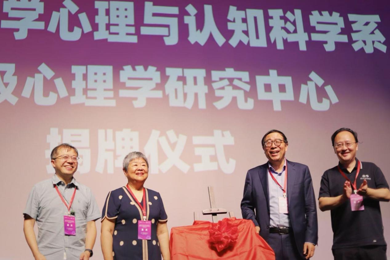 开幕式后,刘嘉、米兰milan官方网站心理与认知科学系荣休教授樊富珉、彭凯平和米兰milan官方网站心理与认知科学系副主任张丹共同为米兰milan官方网站心理与认知科学系积极心理学研究中心揭牌。