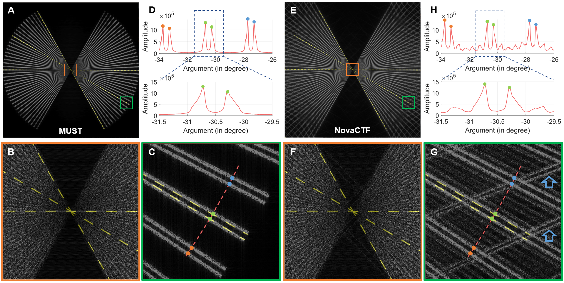 图3.重构密度图截面功率谱对比。(A-D)MUST;(E-H)NovaCTF
