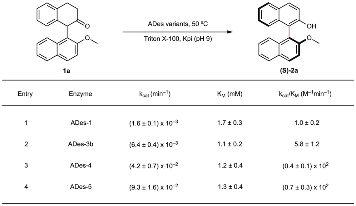 在确定最优变体ADes-5后,研究团队评估了其在多种1-芳基-2-四氢萘酮衍生物上的适用性。结果表明该酶对芳环的各种取代基都表现出显著的耐受性,无论是卤素、杂环还是氧化敏感的底物,均可被高效转化为目标联芳基产物,且具有良好的产率与对映选择性。