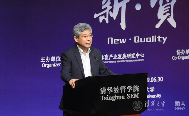 彭福伟在致辞中强调了体育产业在人民健康生活、经济社会发展等方面的重要作用,为实现体育产业高质量发展,他认为,一是要树立高质量发展的理念,二是要加快完善市场体制,三是要营造良好的体育消费环境,四是推动“体育+”,即促进大数据、云计算、虚拟现实和人工智能来支持体育产业发展。