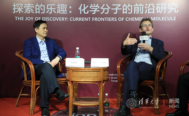费林加教授首先从来源于日常生活中的一些有趣的化学问题切入,来引导同学们发现化学与生活的密切联系。接着教授通过介绍一些人体内本身存在的分子开关,以及纳米分子合成技术的发展现状及应用,引出了合成纳米级别的分子马达的设想并解释了其工作原理。分子小车用于医学领域,可以检测人体内的癌细胞,定向运送药物;用于工业领域,可以实现玻璃、太阳能电池板等的自我清洁。最后,费林加教授鼓励同学们勇于发掘自身的才能,在科研的大千世界里不断发现、创造新的事物。