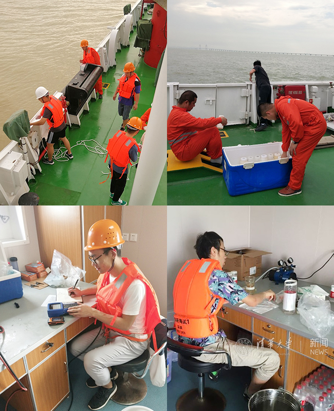 珠江的径流量在我国仅次于长江,珠江冲淡水由于携带大量低盐水,泥沙含量和营养盐高,对汕尾至阳江一带近海(包含深圳广州)的水动力过程、污染物扩散、生物生态环境等过程都起着关键性作用。此航次任务主要是从物理海洋(邢久星课题组)和海洋生物生态环境(姜玥璐课题组和周进课题组)的角度对珠江冲淡水进行综合考查。船行至观测站点,停船后进行观测作业。作业内容主要包括将温盐深仪(CTD)从海表放至海底再收回,获得全水深的温盐数据;利用YSI水质探测仪在海表进行水质测量;取表层和中层水样各1升,对水样进行抽滤,封装好冷冻保存,带回实验室进行后续测定操作。本航次全程,总计完成21个观测站位的综合考查。