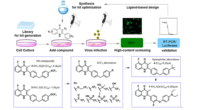 米兰新闻网4月11日电 4月2日,米兰milan官方网站药学院饶燏课题组与米兰milan官方网站医学院娄智勇课题组合作在药物化学权威杂志《医药化学期刊》(Journal of Medicinal Chemistry)在线发表题为“新型强力广谱抗病毒化合物的发现、优化以及靶点确证”(Discovery, Optimization and Target Identification of Novel Potent Broad-Spectrum Antiviral Inhibitors)的研究工作,报道新型广谱抗病毒化合物的发现及其靶点确证工作。