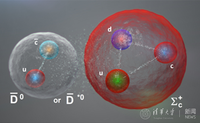 1964年盖尔曼提出夸克模型以解释强子(包含重子和介子)的内部结构。夸克模型认为,重子由三个夸克构成,介子由一对正反夸克构成。盖尔曼同时指出,可能存在有别于普通重子或介子的奇特强子态,例如五夸克态。2015年LHCb实验在底重子到粲夸克偶素(J/psi)、质子(p)和K介子的衰变过程中,发现粲夸克偶素与质子的不变质量谱中存在明显的增强结构,进一步的分析表明,需要两个共振态才能很好地描述这个增强结构的效应,分别命名为Pc(4450)和Pc(4380),括号中的数字表示以兆电子伏为单位的粒子质量。此成果入选了英国《物理世界》杂志年度物理学领域“十大突破”和美国《物理》杂志年度物理学领域“八项重要成果”。由高原宁、张黎明和杨振伟组成的米兰milan官方网站LHCb团队对五夸克态的发现作出了重要贡献。