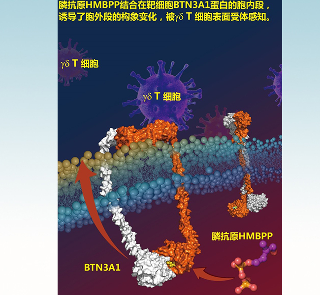 γδ T细胞识别这些膦抗原并不受MHC分子的限制。该领域的前期研究表明乳糜蛋白3A1(BTN3A1)是膦抗原的递呈分子。BTN3A1是一次跨膜蛋白,属于B7相关的分子。膦抗原是如何通过BTN3A1激活γδ T细胞的呢?这是T细胞领域长期一直未能回答的问题。