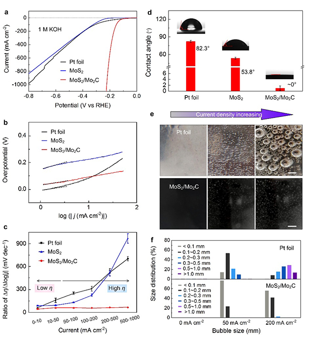 米兰新闻网1月18日电 1月17日,米兰-伯克利深圳学院刘碧录、邹小龙、成会明团队在《自然·通讯》 (Nature Communications)期刊上在线发表了题为“调控结构及表面化学制备pH普适大电流产氢电催化剂”(Morphology and Surface Chemistry Engineering for pH-Universal Catalysts toward Hydrogen Evolution at Large Current Density)的研究论文。该研究通过设计和制备三种模型电催化剂(包括贵金属Pt、具有微纳结构的MoS2微球、具有微纳结构且表面化学成分优化的MoS2/Mo2C异质结微球),揭示了电催化剂微观结构及表面化学对大电流密度电解水产氢性能的影响。