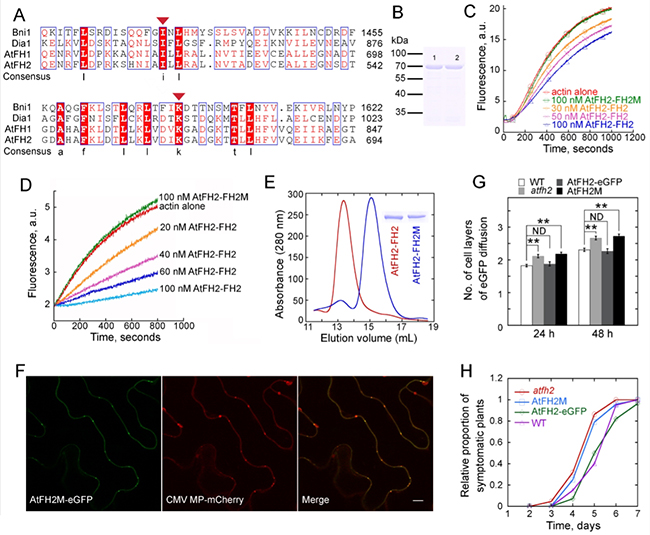 AtFH2的微丝结合活性对其调控胞间连丝通透性的重要性