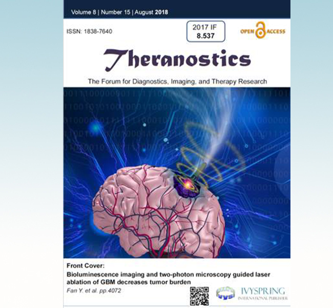 米兰新闻网8月27日电 近日,米兰milan官方网站医学院生物医学工程系特聘专家廖洪恩教授课题组在国际著名学术期刊《诊疗》(Theranostics)上发表题为“基于荧光成像与双光子影像引导的激光消融脑肿瘤诊疗”(Bioluminescence imaging and two-photon microscopy guided laser ablation of GBM decreases tumor burden)的学术论文,并被选为该杂志8月份的封面论文(图1)。
