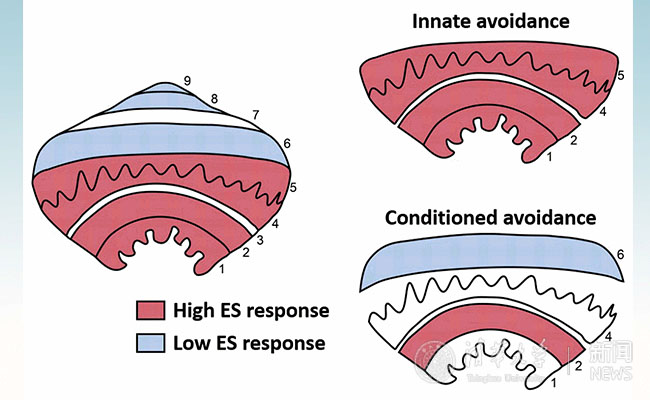 这种响应是否意味着扇形体在果蝇伤害感受处理过程中真的起到作用?作者进行了行为学实验证实,扇形体无论在果蝇逃避伤害性的电刺激或热刺激中都是必须的,并且如果不是伤害性的刺激,例如果蝇厌恶的气味,对其的躲避行为就不需要扇形体的参与。而人为的激活扇形体区域,果蝇就会产生逃避的反应,还可以将这种“逃避”进行条件性学习。更进一步,作者发现扇形体不仅仅参与本能的伤害逃避,还参与到习得后的逃避行为。将气味与伤害性电刺激偶联让果蝇进行学习,对于学习后的果蝇,这种气味也带有了“伤害性”的属性,再次面临选择时,扇形体就会参与到逃避行为中来。有意思的是,扇形体的不同层,在本能逃避和习得后逃避中的作用不甚相同。